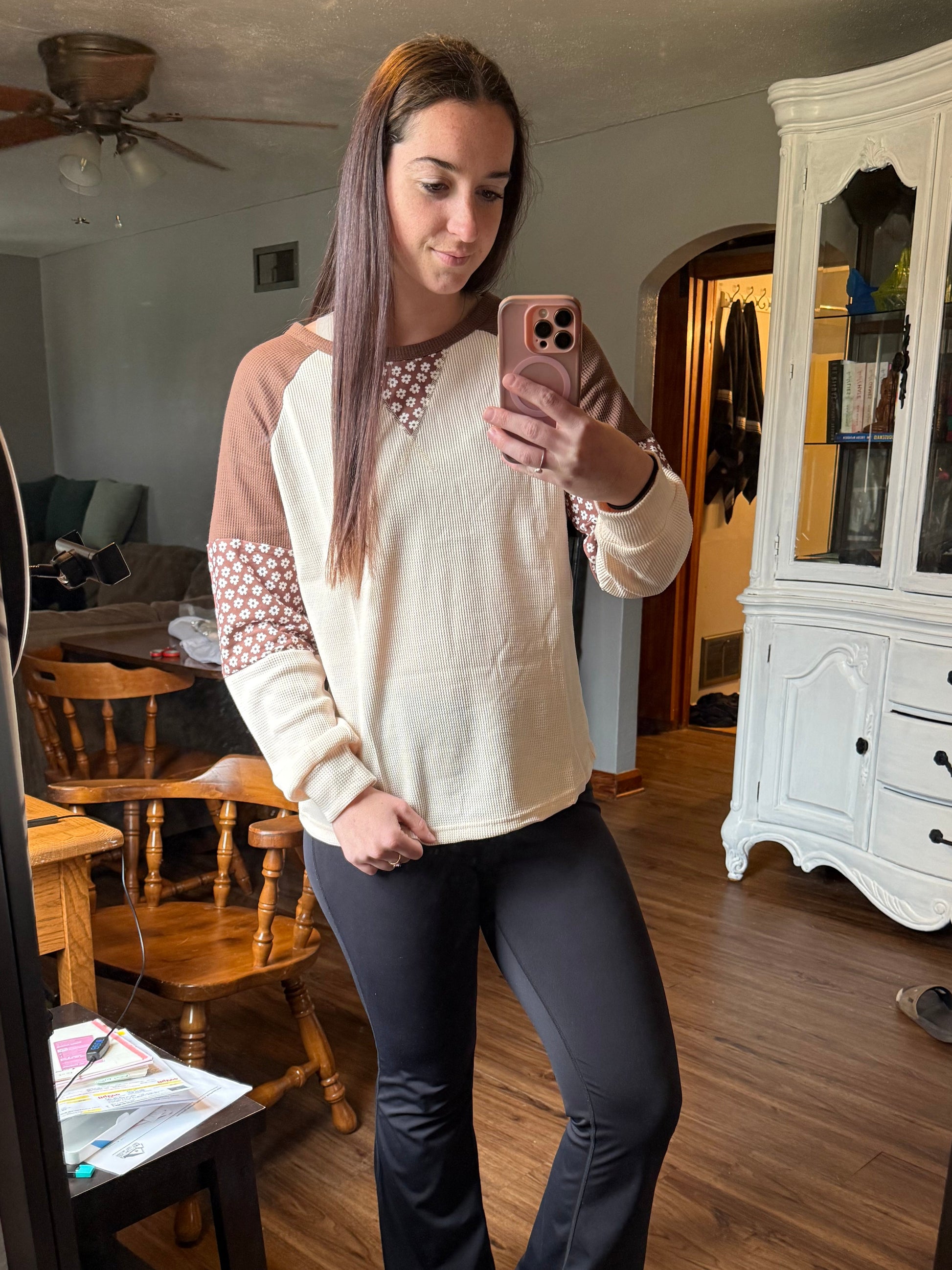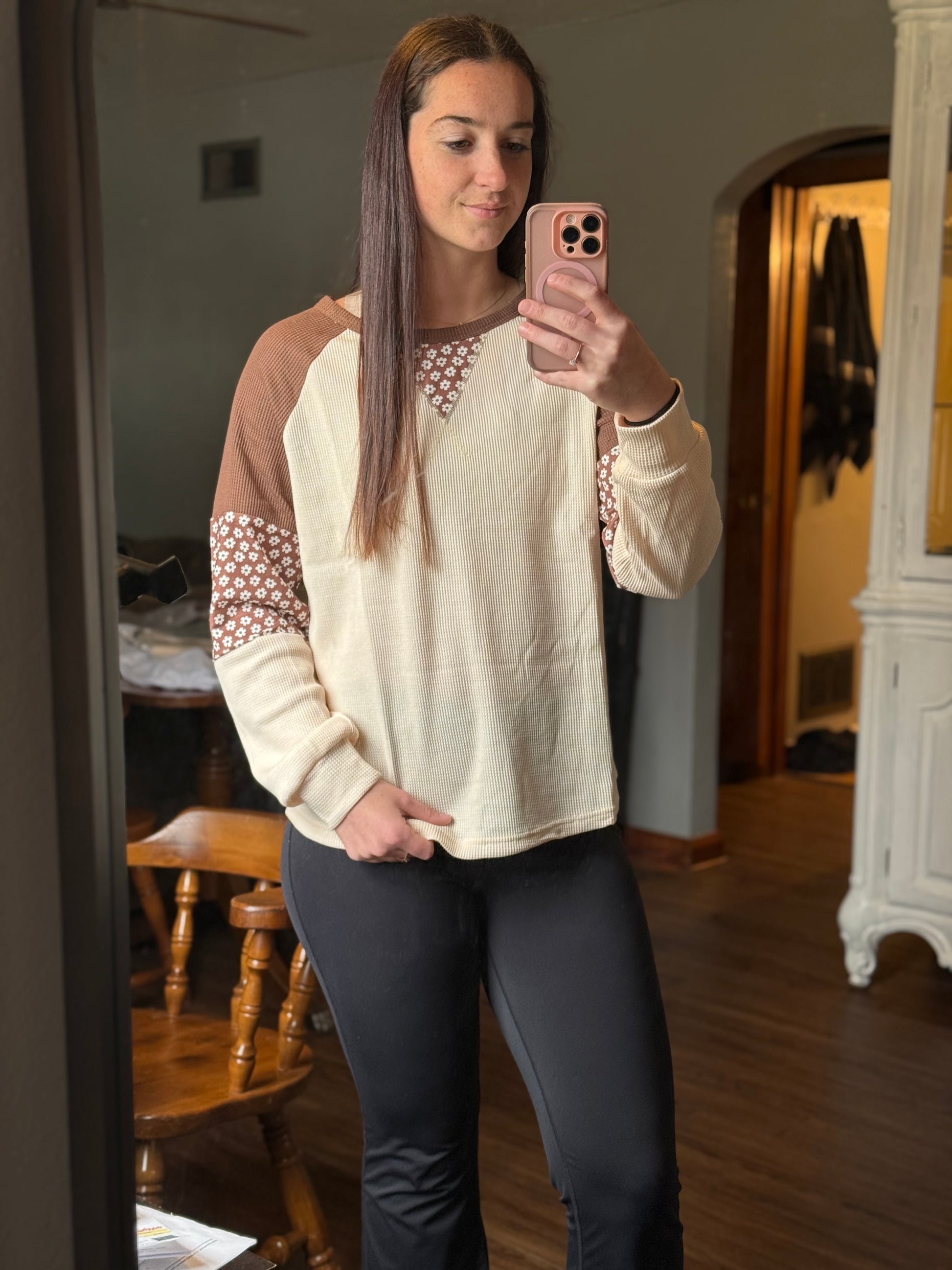 Floral Patchwork Colorblock Raglan Long Sleeve Top